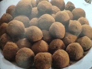 Con le mani inumidite faccio delle palline grosse come noci, leggermente allungate perché assomiglino alle olive. Le passo nella farina, negli albumi sbattuti (perché non si butta niente ma non si possono fare meringhe in continuazione!) e infine nel pangrattato macinato molto, molto fine. Le friggo poche alla volta in olio di oliva ben caldo, poi le scolo sulla carta da cucina.