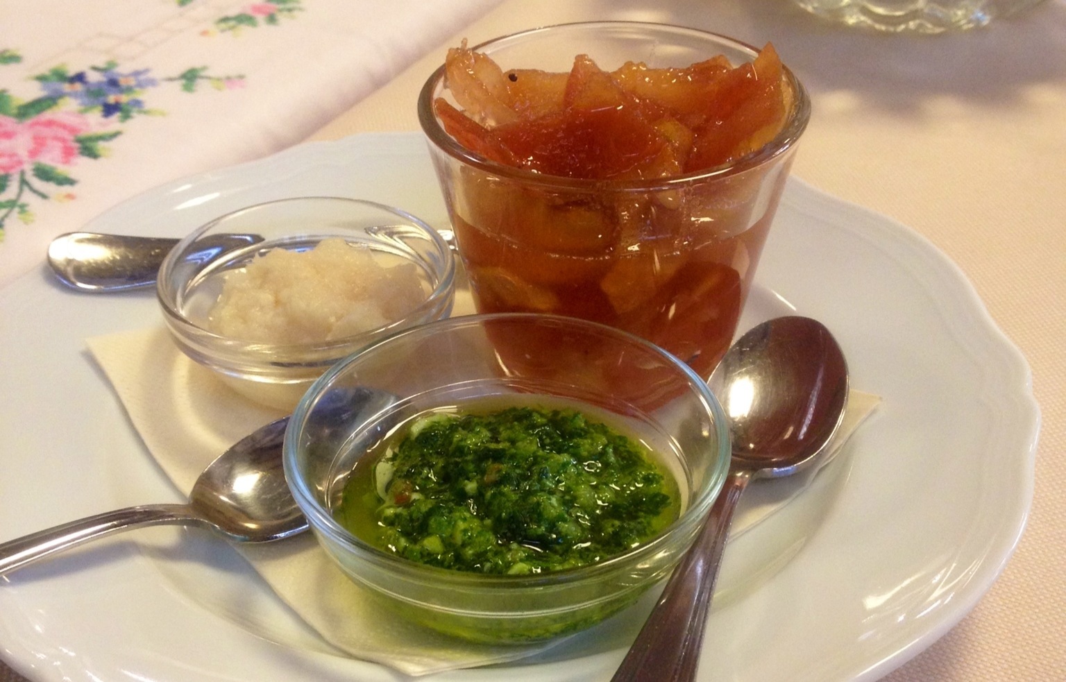 A Pasqua le ho servite tra gli antipasti, ma dato che si trattava di un pranzo importante, le ho decorate anziché con i sottaceti, con una onnipresente coda di gambero al vapore, molto più elegante.