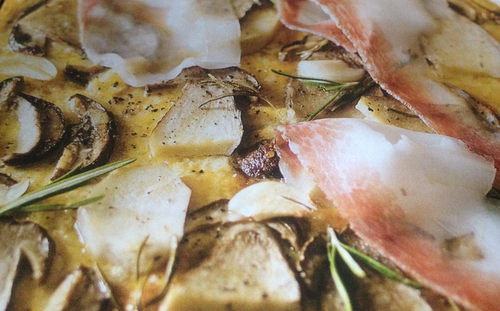 Questa è arricchita con funghi porcini saltati semplicemente in padella con aglio e prezzemolo, rosmarino e lardo di Arnad, che a contatto con la polenta calda si fonde un po’ e rende l’insieme fantastico.