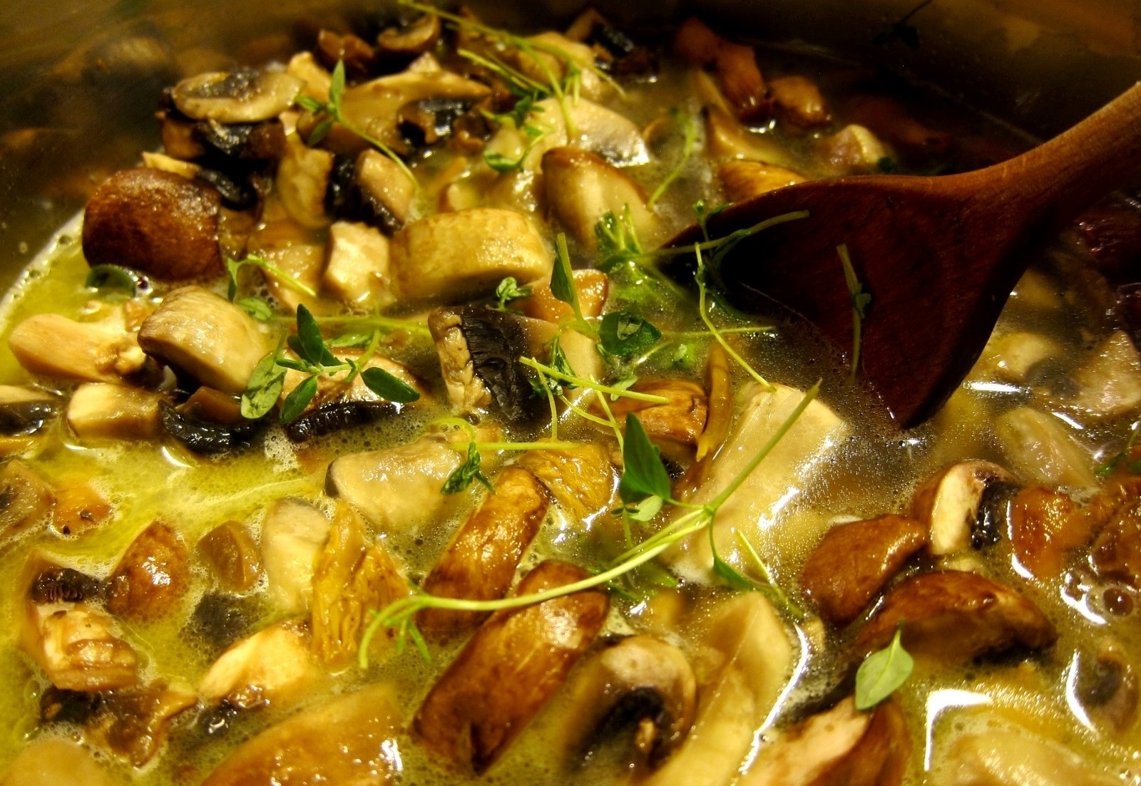 Ho fatto un battuto con 1/2 cipolla, 1/2 spicchio d’aglio e 1 cucchiaio di prezzemolo tritato, l’ho fatto soffriggere con 30 gr di burro e quando è diventato bello dorato ho unito 50 gr di porcini secchi ammollati nell’acqua tiepida e tagliuzzati grossolanamente.