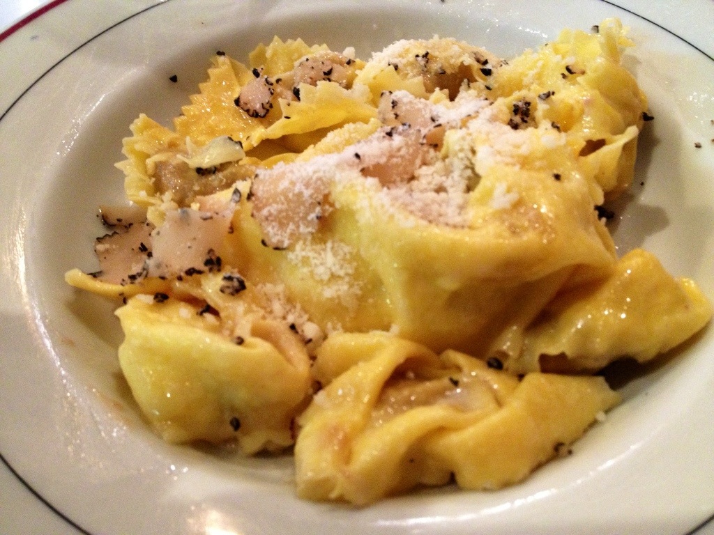 Si coprono generosamente con il tartufo tagliato con la mandolina e si completa col parmigiano grattugiato.