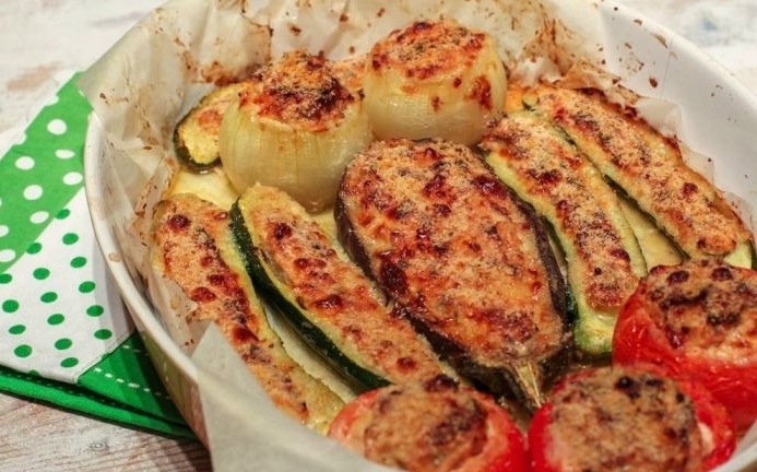 Per il ripieno si fanno imbiondire con 2 cucchiai di olio una grossa cipolla e 1 spicchio d’aglio grattugiato.